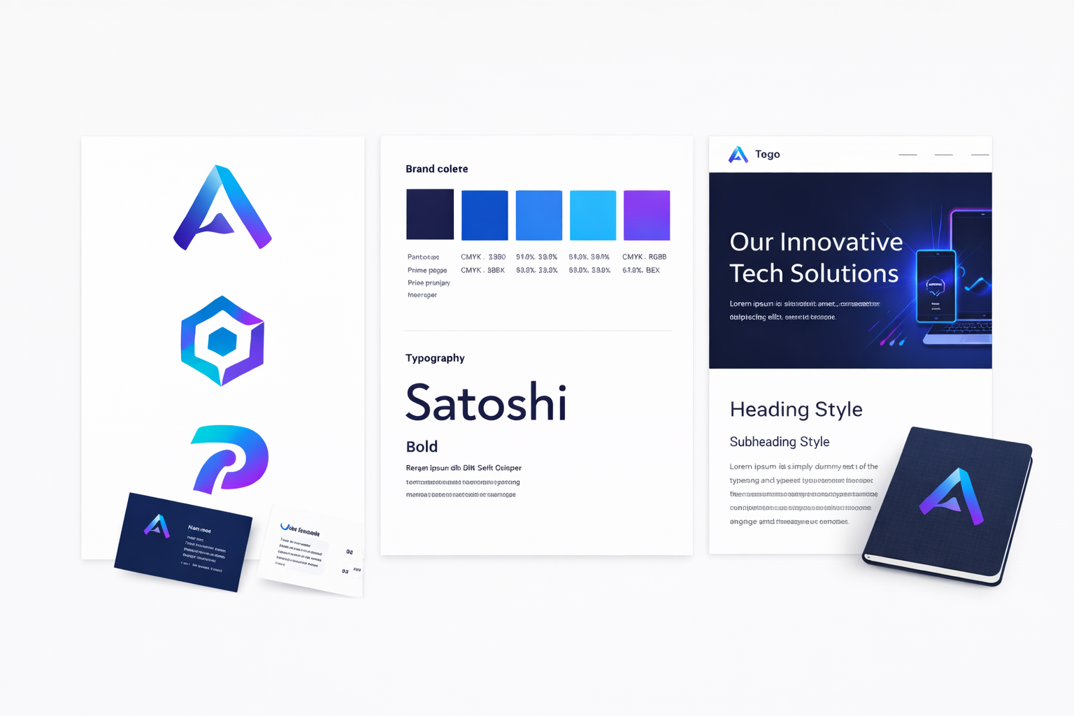 Developing a visual language for a tech company. How to present logo concepts and brand guidelines in a portfolio.